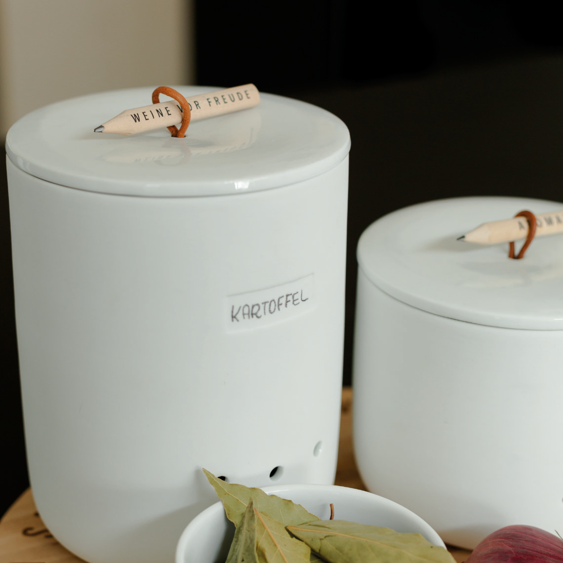 Die Dose eignen sich zur hervorragend zur Aufbewahrung von trockenen Lebensmitteln wie Zwiebeln oder Kartoffeln, die trocken und dunkel gelagert werden sollten. Mit dem mitgelieferten kleinen Bleistift kann die Dose in dem kleinen, dafür vorgesehenen Feld, immer wieder neu beschriftet werden. Dabei ist der Porzellantopf in zwei Größen erhältlich. Eine wunderschöne Aufbewahrungsdose, die ein wunderschönes schlichtes Design in die Küche und das Zuhause bringt!