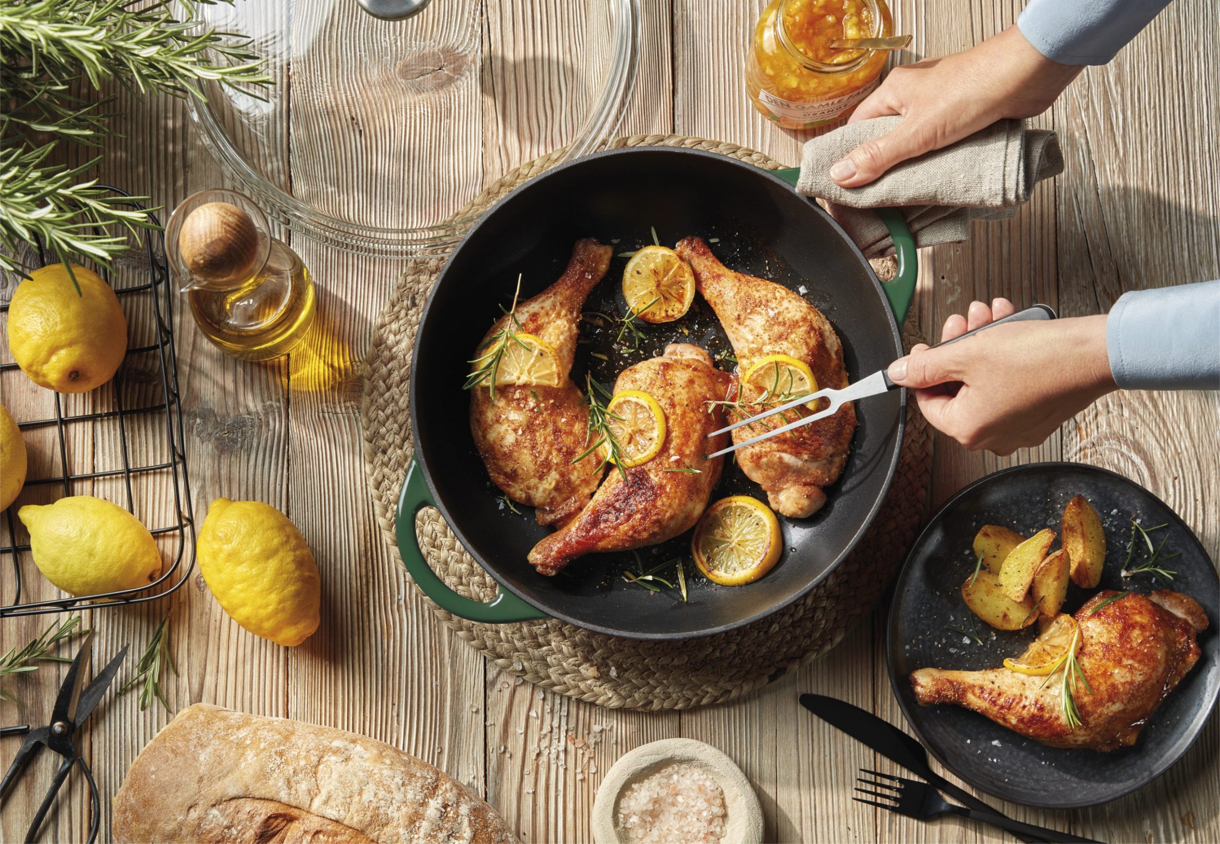 Von der Sonne verwöhntes Gemüse, Lammfleisch aus dem Hochland, Fisch und Meeresfrüchte – das alles bietet die Provence, nach der die Gusseisen-Serie benannt ist. Vielseitig, leicht und gesund ist die Küche dieser südfranzösischen Region. Die hochwertigen Zutaten werden schonend verarbeitet. In dieser Tradition steht die KÜCHENPROFI Guss-Kollektion PROVENCE. Das Gusseisen nimmt die Hitze schnell auf und verteilt sie optimal. So können Sie nach kurzer Zeit die Energiezufuhr reduzieren – das spart Strom und erhält das Aroma Ihrer Lebensmittel. Die PROVENCE-Kochgeschirre sind für alle Herdarten inklusive Induktion und auch für den Grill geeignet, die Knöpfe bis 250° C backofenfest. Das ebenso schlichte wie durchdachte Design mit den handlichen Knöpfen und ergonomischen Griffen macht sich gut auf jeder Tafel.