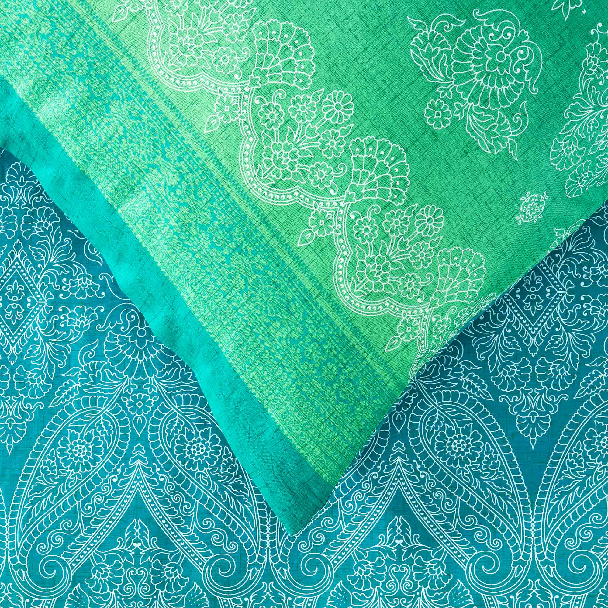 Kerala V1 bringt frische Grünnuancen ins Schlafzimmer: Smaragdgrün, Limette und ein Hauch von Minze verschmelzen zu einem harmonischen Farbspiel mit natürlicher Ausstrahlung. Zarte Linien, florale Elemente und filigrane Ornamentik formen kunstvolle Medaillons, die sich sanft über einen leicht verblassten Hintergrund legen.