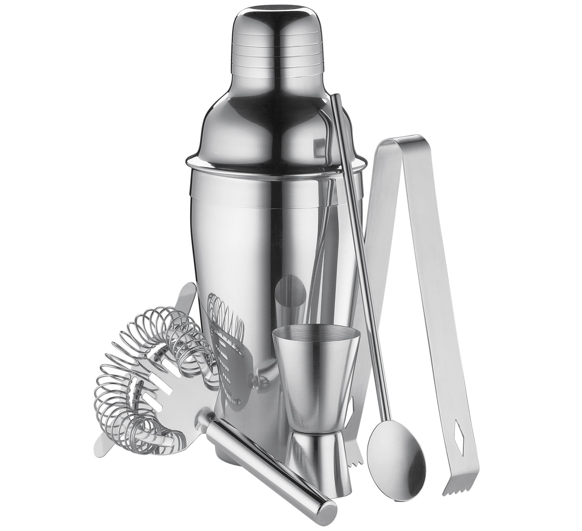 Gerührt oder geschüttelt? Mit dem 5-teiligen Bar-Set von cilio zaubern Sie Cocktails, Short- und Longdrinks wie ein Profi. Cocktailshaker, Barmaß, Barsieb, Eiszange und Löffel sind aus rostfreiem Edelstahl gefertigt. Der Shaker liegt gut in der Hand. Becher und Aufsatz sitzen auch beim kräftigen Schütteln fest. Das Barmaß mit 20 bzw. 30 ml Volumen hilft Ihnen, die Zutaten für Ihren Lieblingsdrink perfekt zu dosieren. Das Barsieb verhindert, dass Fruchtstückchen und andere feste Bestandteile in das Glas gelangen. Die Eiszange hat die Würfel fest im Griff und befördert sie hygienisch in Ihr Getränk. Der Löffel mit dem extralangen, dünnen Stiel ist perfekt für hohe Gläser. Tipp: Servieren Sie auf Ihrer nächsten Party den Autofahrern einen Ipanema ‒ die alkoholfreie Variante des Caipirinha.