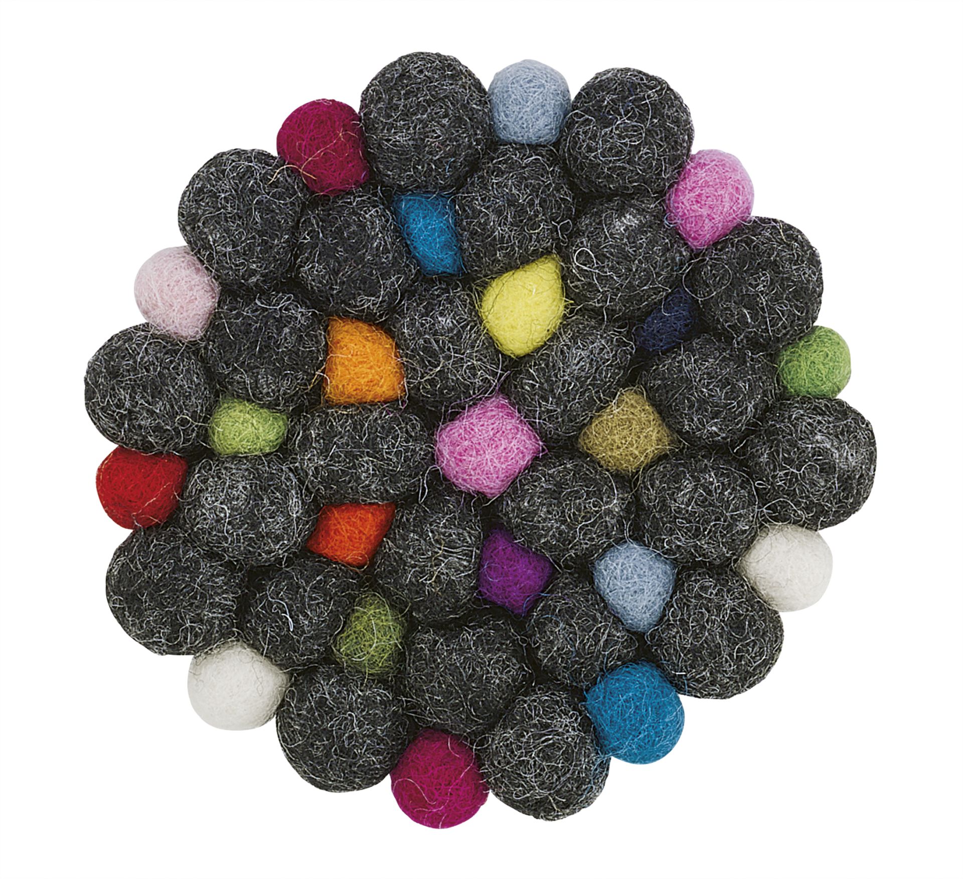 sischen Handwerks fördert und für seine soziale und ökologische Verantwortung das Zertifikat der World Fair Trade Organisation (WFTO) erhalten hat. Die Untersetzer werden hier überwiegend von Frauen aus den umliegenden Dörfern gefertigt. Die hitzebeständige, waschbare Schafwolle wurde mit azofreien Farbstoffen gefärbt und leisten auch hiermit ihren Beitrag zu einer nachhaltigeren Welt.