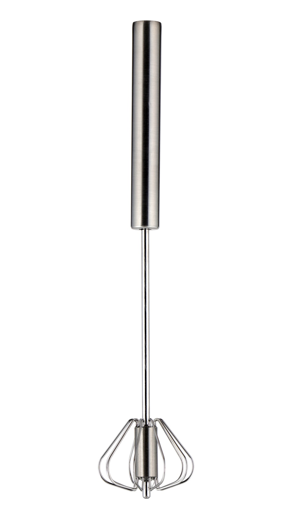 Mit diesem manuellen Handmixer haben Sie eine echte Alternative zum Schneebesen! Gleichzeitig ist er ein stromloser Rührgerät-Ersatz zum zum Mixen und Aufschlagen von Flüssigkeiten. Mit seinem Quirl-Kopf ist er ideal zum schaumigen Aufschlagen von Eiern oder Flüssigkeiten wie Saucen, Suppen, Milchschaum, flüssigen Teigen, Sahne oder Dressings.