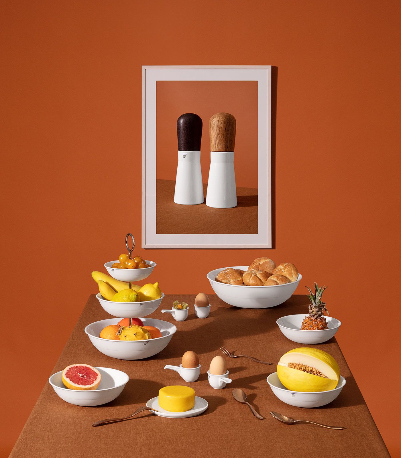 Die neue LAB Etagere vereint funktionale Laborästhetik, elegante Tischkultur und praktische Raumnutzung. Ein Metallgestell trägt auf drei Servierebenen LAB-Schalen im typischen Mix aus glasierter und matter Oberfläche und wird somit zum minimalistischen Centerpiece. Sie besteht aus den LAB Schalen 14, 19 und 26. Damit hat sie eine gesamt Höhe von 35 cm und ist dank des Gestänges mit dem praktischen Tragering auch transportabel. Alle Stücke der stetig wachsenden LAB Familie sind anhand der chromgrünen Stempelmarke und dem Schriftzug „KPM BERLIN“ zu erkennen.